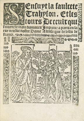 Trahyson, et les tours de ceulx qui suivent le train damours. Paris, veuve Jehan Trepperel, s.d. [1512-1518]. In-4, demi-maroquin rouge avec coins, tranches jaspées ( Reliure moderne ).