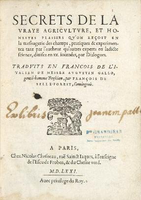 113 GALLO (Agostino). Secrets de la vraye agriculture, et