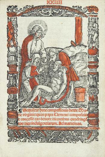 Brun, 223. – Catalogue de la bibliothèque d'A.-F. Didot, I, n° 474. – Passavant, III, pp. 239-240 et 243. Belle édition imprimée en petits caractères gothiques, en rouge et noir, avec les pages de texte encadrées.