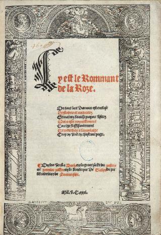 161 LORRIS (Guillaume de) et Jean de MEUN. Cy est le Rommant de la Rose. Paris, Galliot du Pré, 1531.