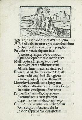 Titre imprimé en rouge et noir, orné d'un grand et beau bois gravé par Vavasori. Un bois à pleine page représentant une Crucifixion, au verso du titre, copie de la gravure des livres de liturgie de Stagnino, et 22 bois dans le texte, certains répétés.