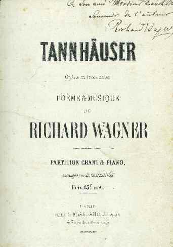 (1813-1883). Dédicace autographe signée sur la page de titre de Tannhäuser, opéra