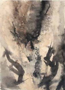 Lavis et aquarelle sur papier, signé en bas à gauche.