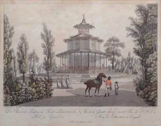 Vue de la Gloriette chinoise dans le parc de S.A.R. le prince de