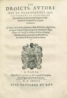 Les Droicts, autoritez et prérogatives que prétendent au Royaume