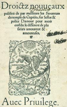 93 [MARTIAL D’AUVERGNE]. Droictz nouveaux publiez de par messieurs les Sénateurs du temple de Cupido, sur
