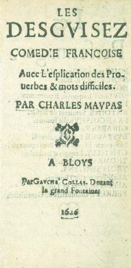 151 [TOURNEBU (Odet de)]. Les Desguisez. Comédie françoise, avec l’esplication des Proverbes & mots difciles.