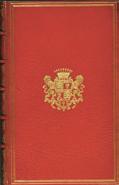 necessaire à tous ceux qui font profession des armes… A la Haye, Henri van Bulderen1685, in-12 ; maroquin rouge, triple filet doré en encadrement sur les plats, armoiries au centre. Dos à nerfs orné. Double filet sur les coupes. Tranches dorées. Encadrement intérieur même maroquin rehaussé de dentelles et roulettes dorées. [Hardy-Mesnil].