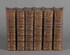 , 6 volumes in-8°, veau havane marbré, dos à 5 nerfs, ornés, tranches rouges, pièces de