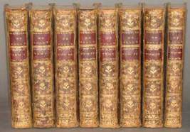 , 8 volumes in-12, veau havane marbré, dos lisses ornés, pièces de titre et de