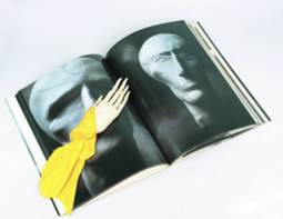 entièrement cousue, le poignet entouré d’un linge jaune. Exemplaire signé avec envoi.