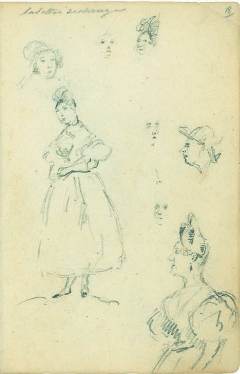 ff. recouverts de croquis originaux au crayon : études de têtes et