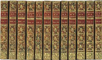 vol. in-8, veau porphyre, dos ornés avec pièces titre et tom. vieux rouge, encadr. de trois filets