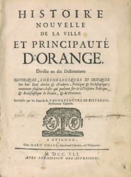 d’Orange. Avignon, Marc Chave, 1741, in-4, x- 542 pp. - 4 ff., veau brun,