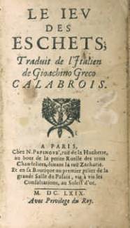 (Gioachino). Le jeu des eschets. Traduit de l’italien. Paris, Pepingue,