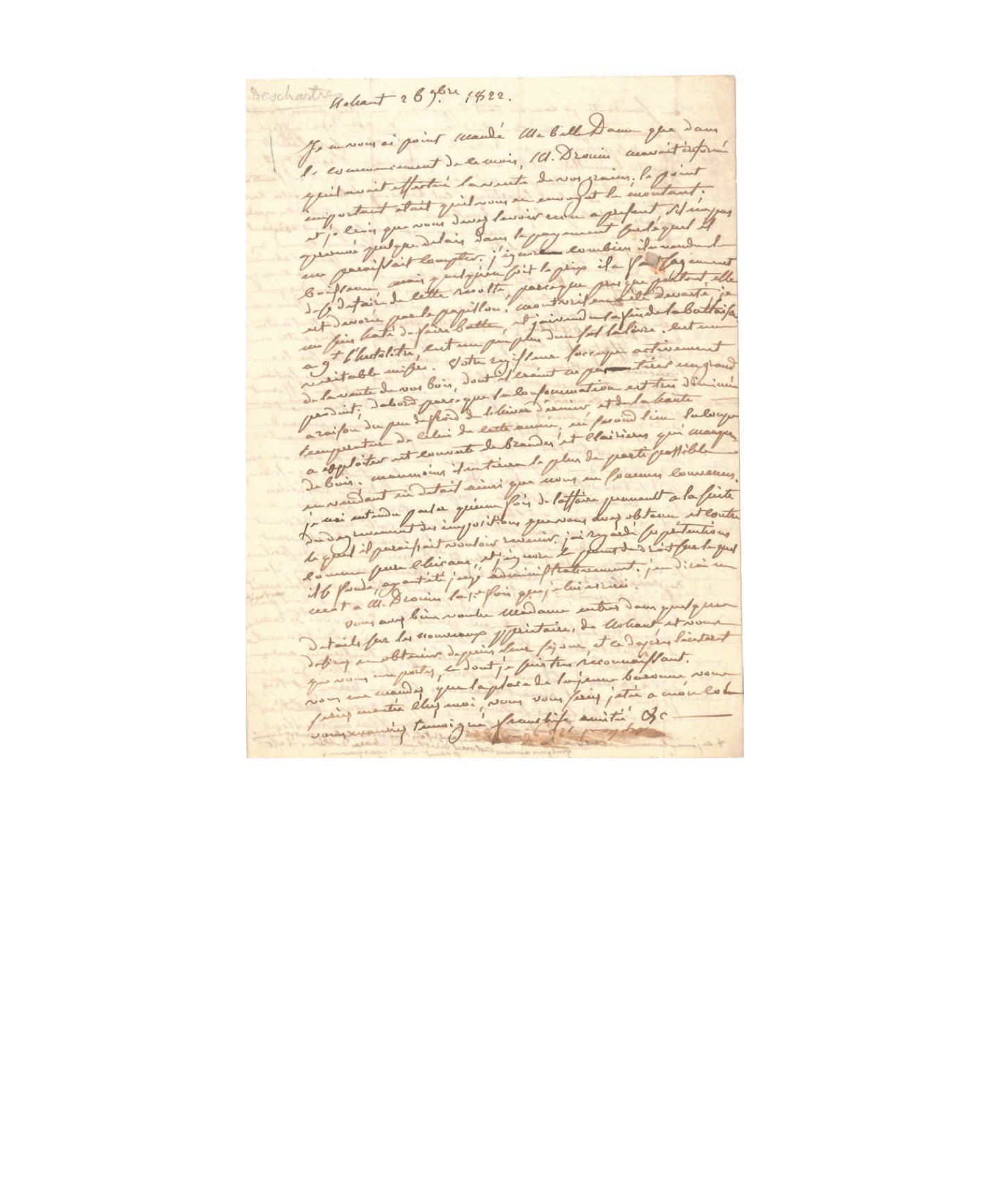 L.A., Nohant 26 septembre 1822, à une « belle Dame » ; 4 pages in-4.