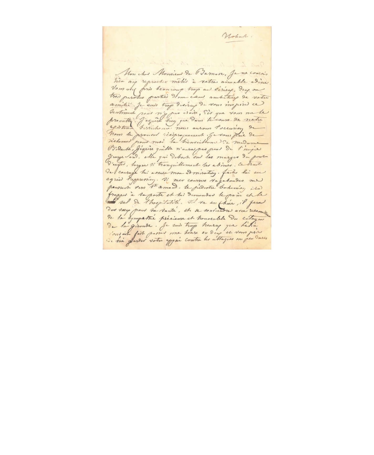 « Venez donc me voir, Monsieur, si vous n’avez pas oublié jusqu’à mon nom. Pour moi je me souviens toujours avec reconnaissance de l’amitié que
