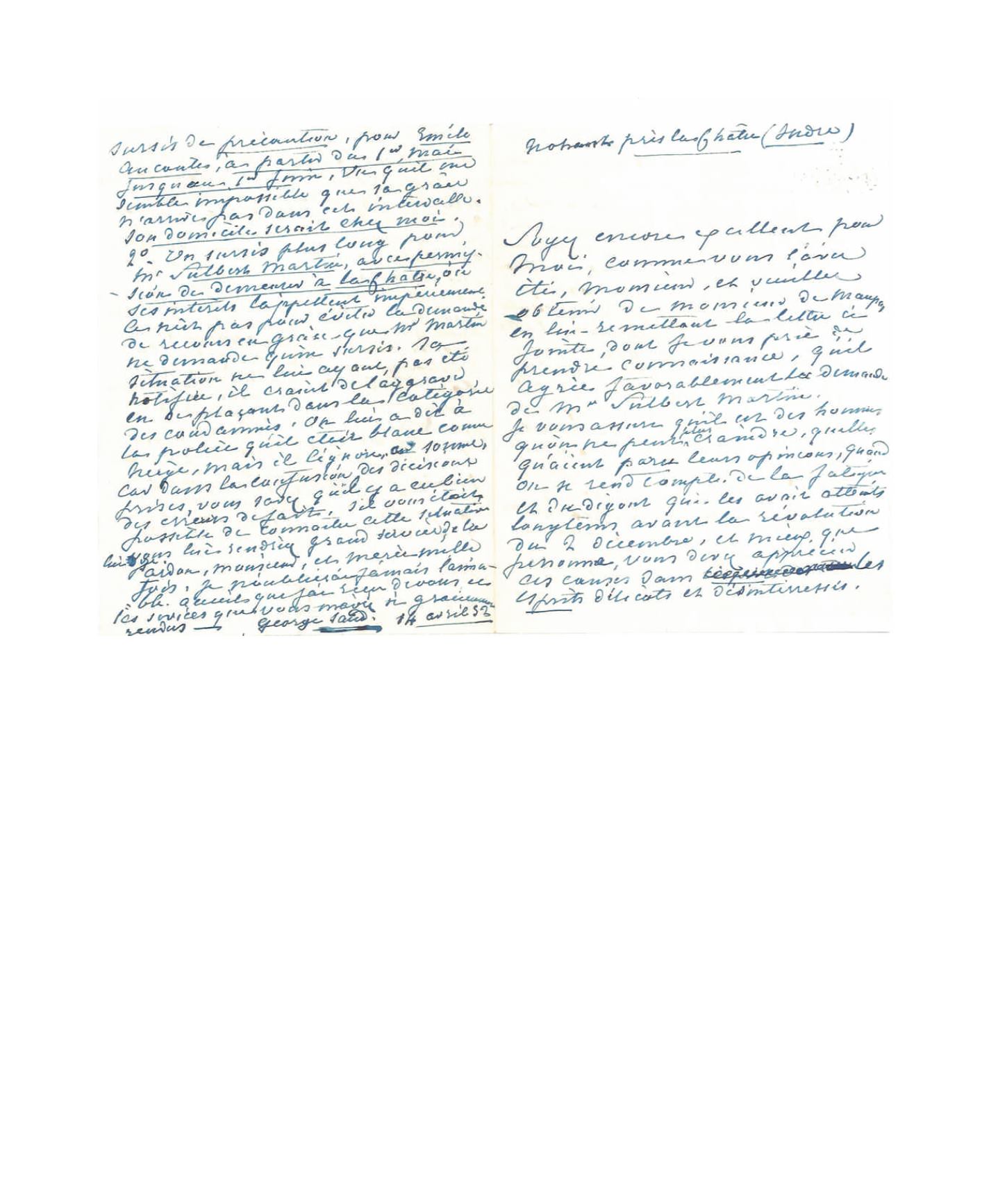 (signée « Lamtubert ») à George Sand au sujet des publications de bans et des sommations respectueuses