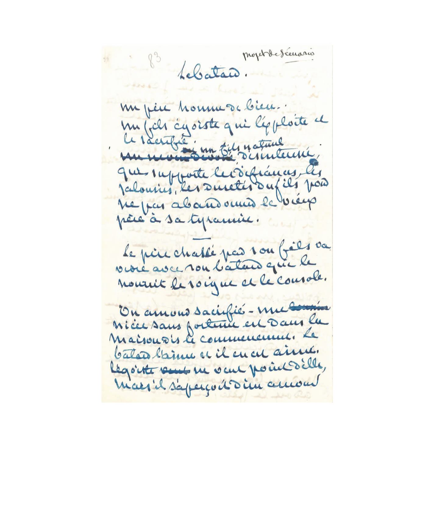 Cela peut donner une jolie scène où les deux bons enfants se sacrifient pour le père et se disent adieu [...] Il faut que le vieux ne soit pas une vieille bête