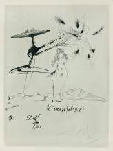 l’héliogravure et pointe sèche en noir sur soie grise de Salvator Dali