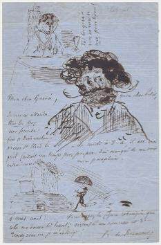 Jolie lettre avec dessins dont un croquis autoportrait et