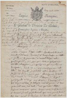 bi-feuillet in-folio, en-tête de Belair « commandant