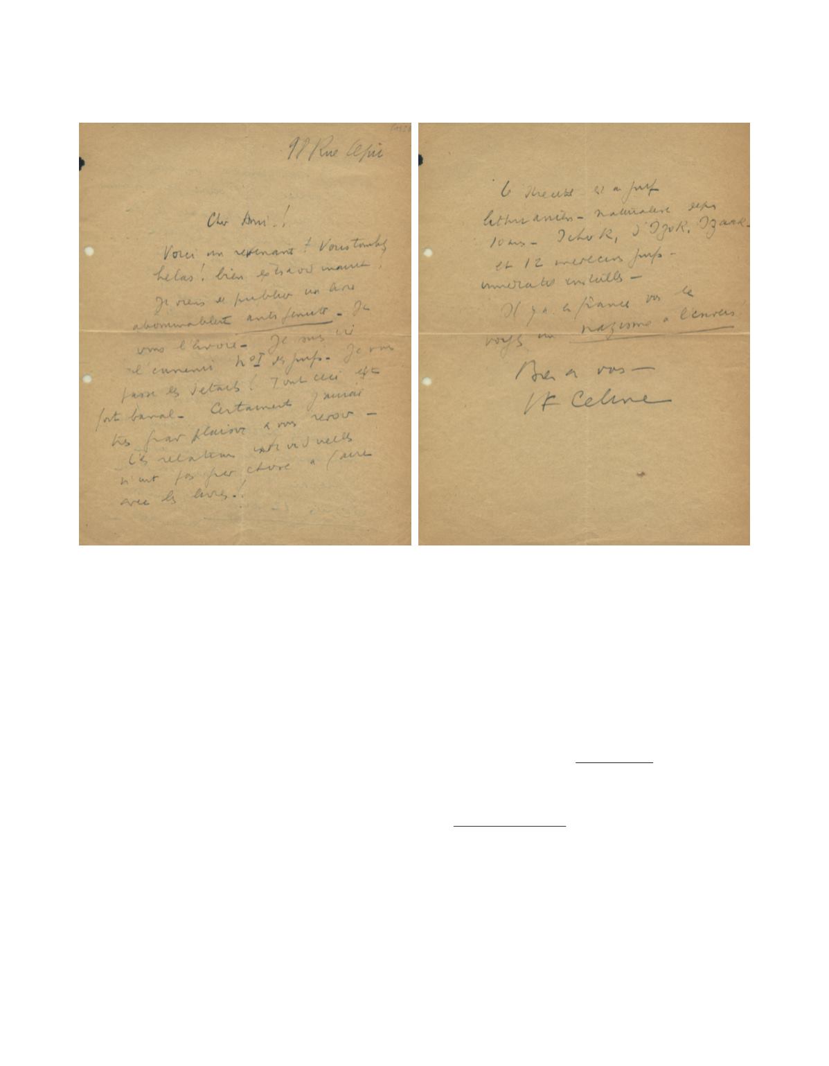 L.A.S. « L.F. Celine » au docteur Walter Strauss.