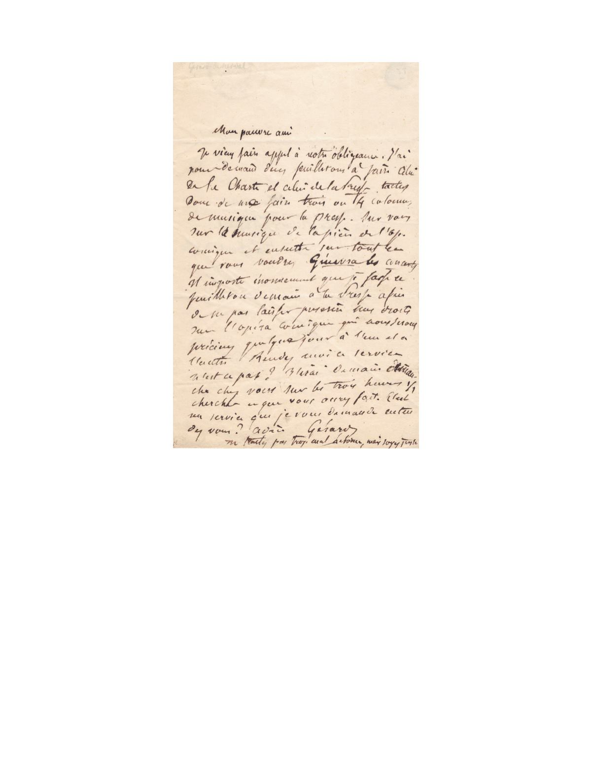 Nerval demande à Elwart d’écrire un article pour lui,