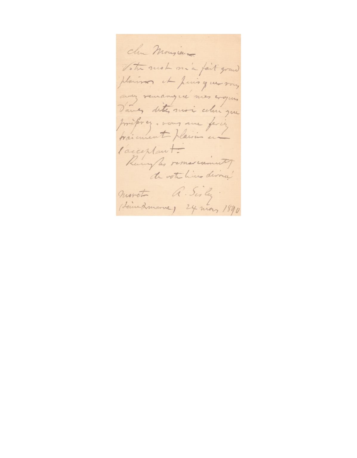 Moret, 24 mars 1890. 1 pp. in-12.