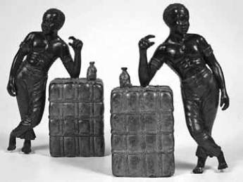 Bois brun, +/- H. 18 x l. 11 x prof. 19 cm, datables de c. 1940-1950.