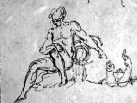 École VÉNITIENNE : Vieillard nu et barbu, assis sur une pierre. Plume et lavis à l'encre