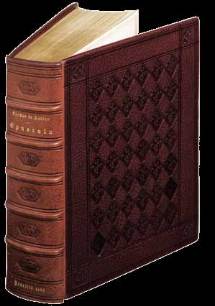 Modern full brown Morocco binding with large decoration. Gold edges. Spanish ex libris on the first blank page. Extremely