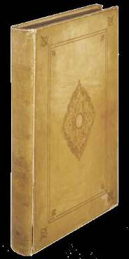 in full vellum with squares. Arabic decoration in gold on the cover. Gold edges.