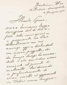 Lettera autografa firmata a Berlino, 2 giugno 1910.