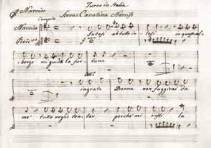 spartito “Ah, mentre è il ciel sereno” è ancora appena leggibile, perché a matita e quasi completamente cancellato, il nome «S. M°