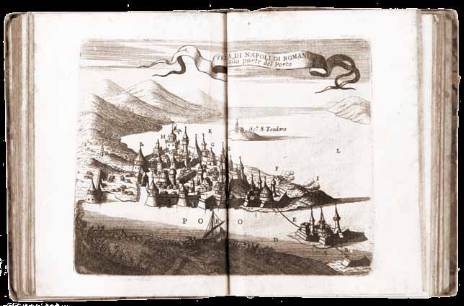 (tra cui Patrasso, Navarino, Modone, Corfù, Zante, Lepanto, Atene, etc.), e la tavola allegorica iniziale su
