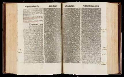 . Hole along the lower margin of the entire volume, restored. A few scattered stains. Annotated and rubricated.