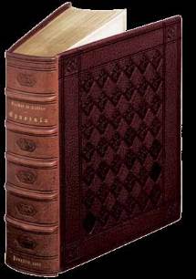Modern full brown Morocco binding with large decoration. Gold edges. Spanish ex libris on the first blank page. Extremely