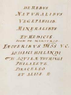de mercurio. Ex operibus mss. Io:Isaaci Hollandi, H. Aquilae