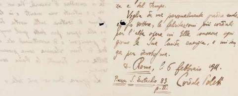 circa due anni, finì tra varie incomprensioni, anche se la nostra lettera, del 6 febbraio 1911, dimostra un grande affetto da parte