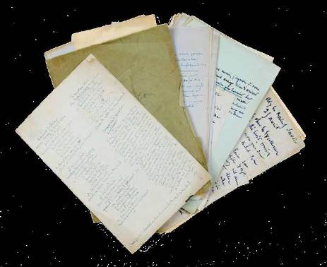 Manoscritti a inchiostro azzurro. Scritte 7 pagine in totale. Alcune correzioni nel testo. Dimensioni varie.