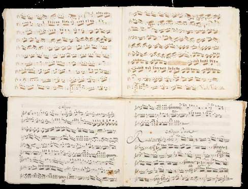 (scritte 9 pagine), Violino Primo Obbligato (scritte 7 pagine), 2 copie del Violino Primo di Rinforzo (scritte 8