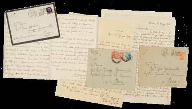 Manoscritti a penna nera. 9 pagine scritte in totale. 1 lettera listata a lutto. Buste e francobolli conservati. Traccia