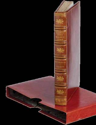 a cinque nervi con ampie decorazioni e titoli in oro, con custodia in cartone rosso