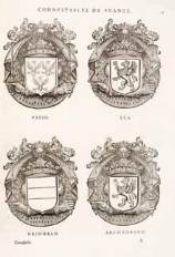 grandi stemmi incisi in legno nel testo. Inoltre emblema di Luigi XIV inciso in