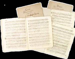 Manoscritto musicale adespoto. Completo. “Libri parte” delle voci del Canto, Alto, Tenore, Basso con