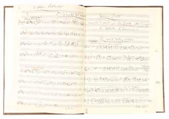 Manoscritto musicale autografo. Spartito per flauto, per voce e partitura d’orchestra. Pagine 44 numerate. è