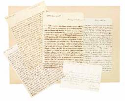 Insieme di 4 lettere e 1 ricevuta autografe e firmate.