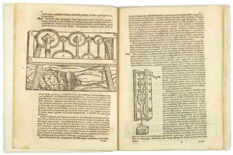 nel testo incise in legno, raffiguranti macchinari e diagrammi; testatine, finalini, capilettera e fregi xilografici.