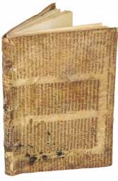 esterno delle carte. Legatura moderna in pergamena di recupero da antico antifonario. Annotazione manoscritta